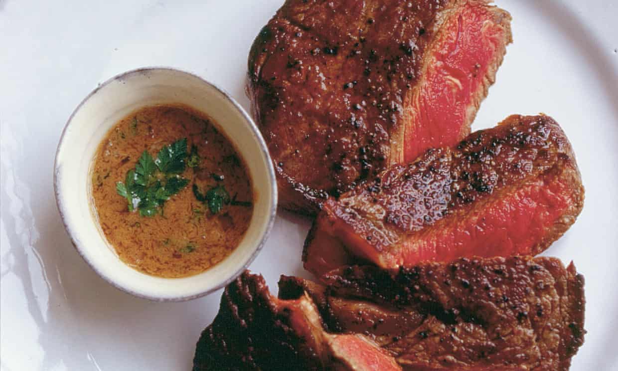 Rib-eye or sirloin steak, white miso, shallot, tarragon, chervil, cider vinegar, butter.